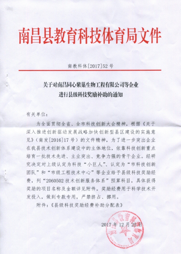 工程技术中心获南昌县教育科技体育局